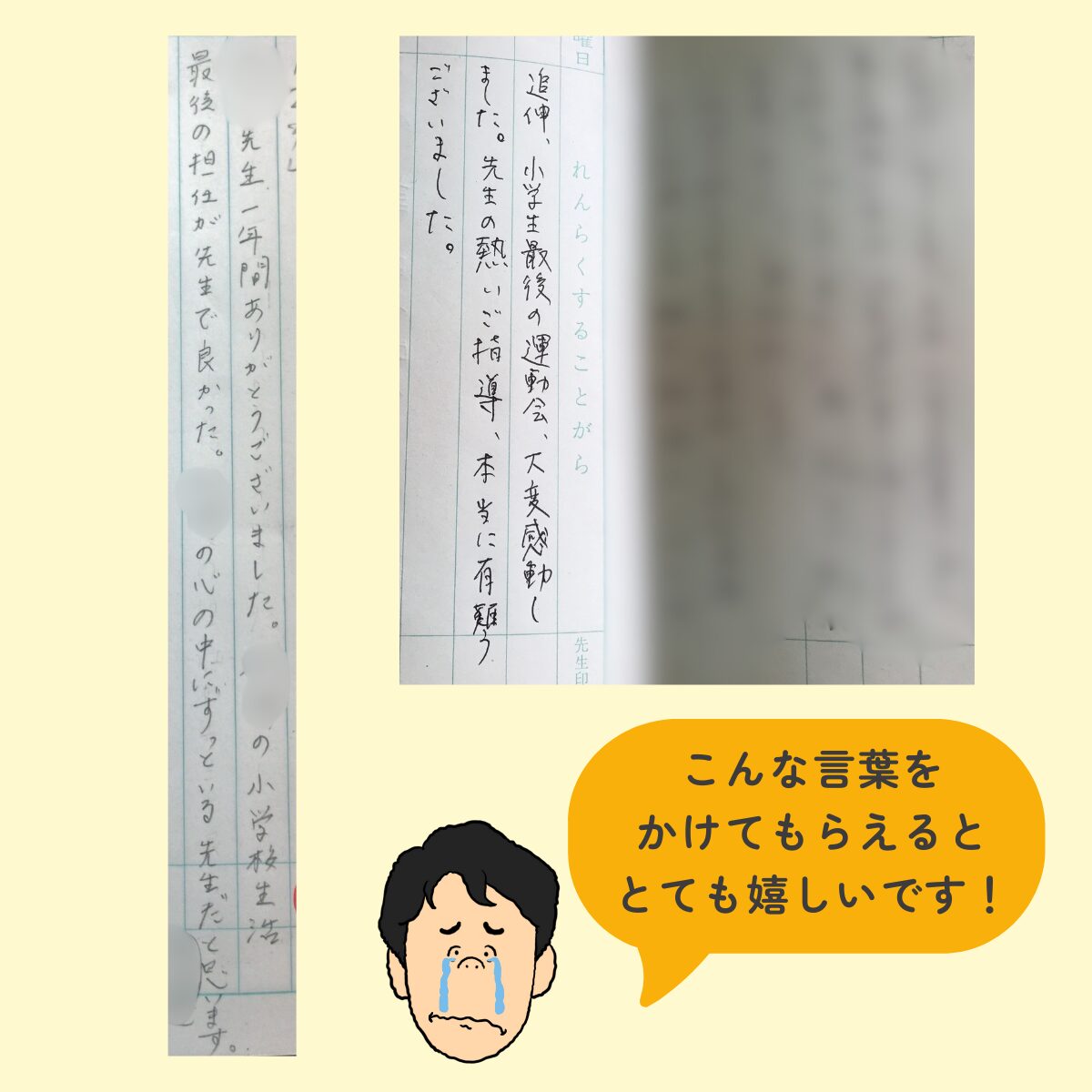 先生を続けていると、保護者の方からご意見いただくことも多々あります。それは思った以上に先生の心に残り続けています。