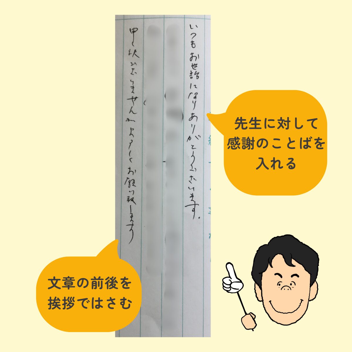 など、一言はいるだけで先生が受け取る印象がまったく変わります。